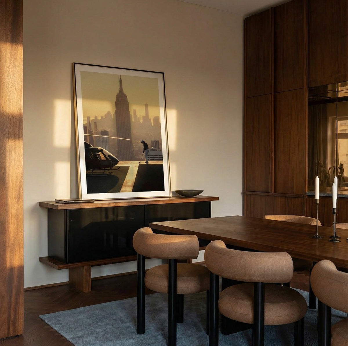This print blends ambition, solitude, and luxury into one cinematic frame — the kind of image that makes you wonder: what does the rest of his day look like?