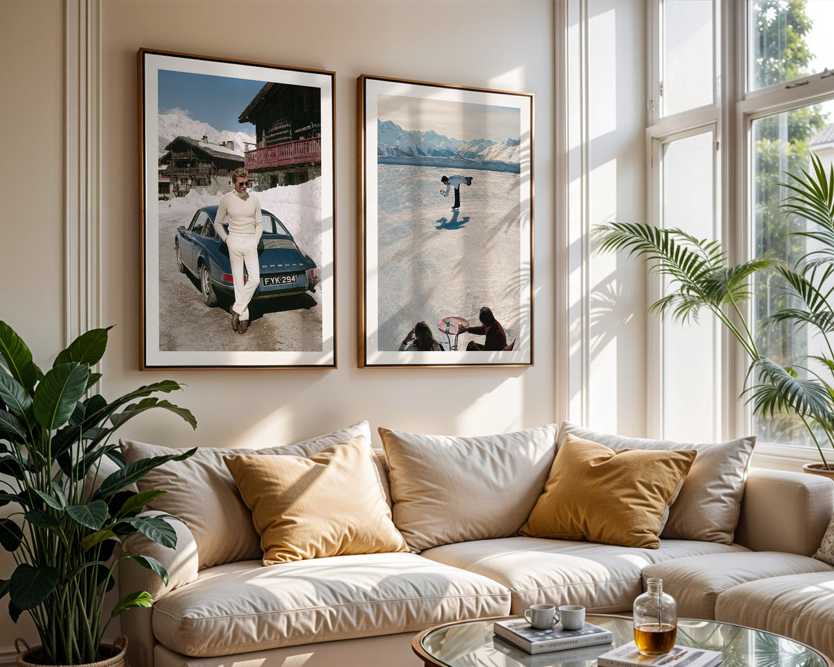 Every detail — the quiet shimmer of the ice, the sweeping mountain ridges, the playful contrast between leisure and perfection — captures the charm of Gstaad at its most magical.