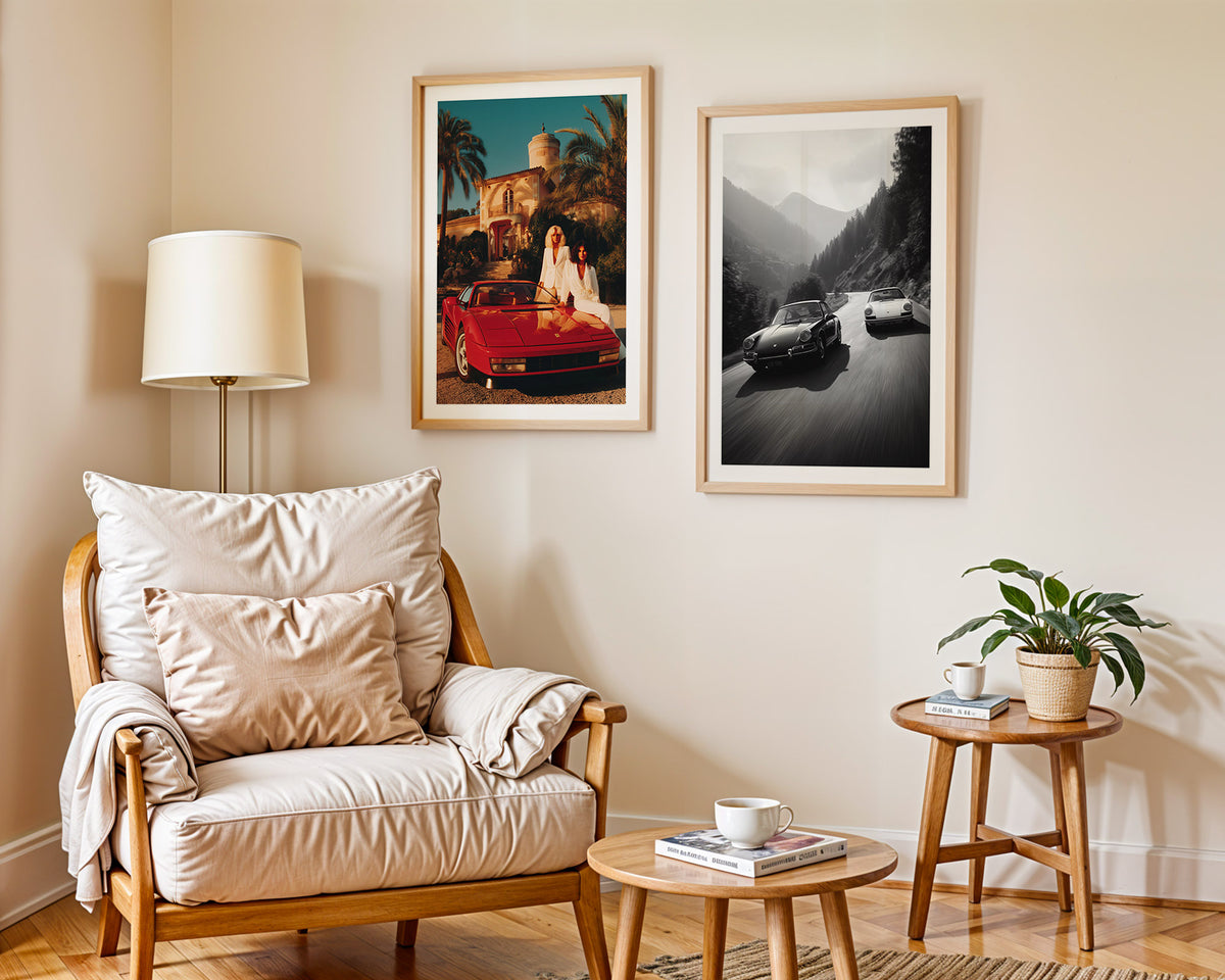 3. Compare the size with your furniture — for example above a sofa, desk, or bed. This helps you see if the poster should stand alone or be combined with others.